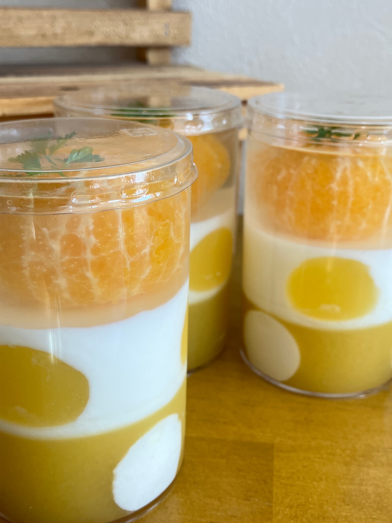オレンジのゼリーとカルピスゼリーの上に丸ごとみかんをドーンと置きました♪